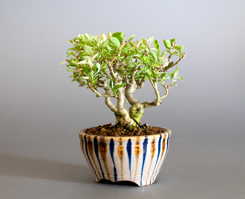 斑入りイボタノキの小さなミニ盆栽です。