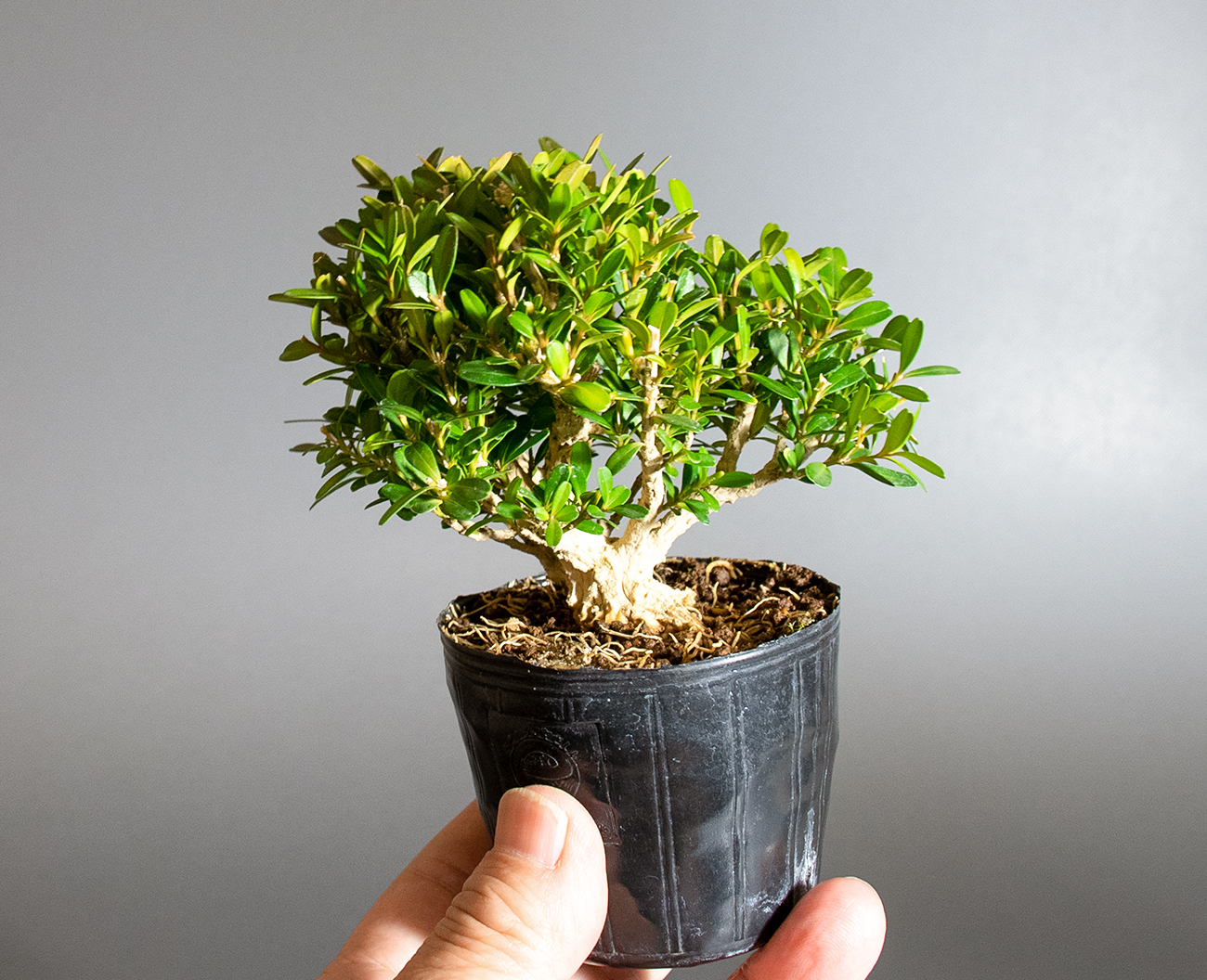 台湾ツゲのミニ盆栽素材です。挿木で16年になります。彫りの深い荒れ肌は素晴らしい見応えがあります。小枝も作り安そうなので小さな盆栽や豆盆栽にも向いていそうです。