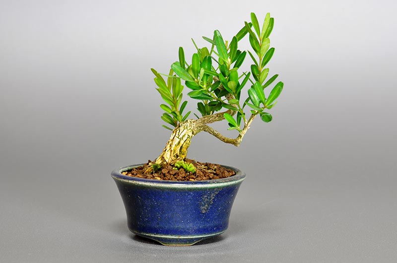 台湾ツゲの挿し木で5年のミニ盆栽です。彫りの深い荒れ肌は素晴らしい見応えがあります。小枝も作り安そうなので小さな盆栽や豆盆栽にも向いていそうです。