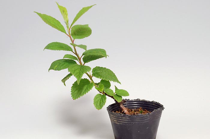 ユスラウメ-A(ゆすらうめ・山桜桃)実もの盆栽を右側から見た景色・Prunus tomentosa bonsai